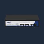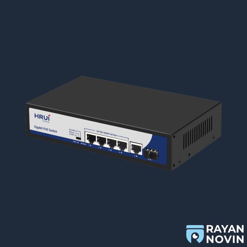 سوئیچ HRUI مدل HR900-AFG-411NS-120 یک سوئیچ PoE حرفهای با 4 پورت گیگابیت PoE و یک پورت آپلینک است که از استانداردهای af/at پشتیبانی میکند. این دستگاه با توان خروجی مناسب، عملکرد پایدار و حالت Extend تا 250 متر.